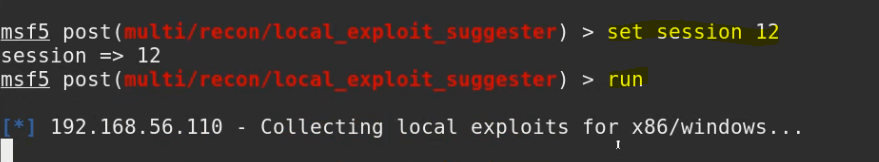 We load the module using use post/multi/recon/local_exploit_suggester then we want to show options