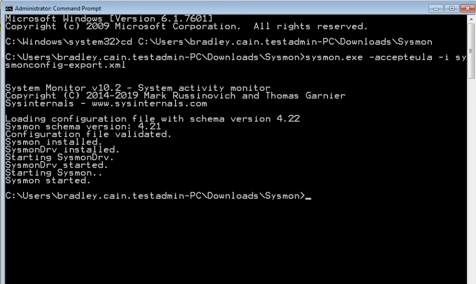 sysmon.exe -accepteula -i sysmonconfig-export.xml