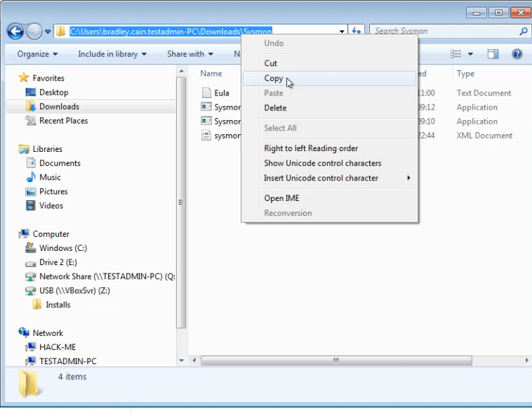 Once your cmd is open you need to copy the location of your Sysmon files so you can run the command from inside the folder.