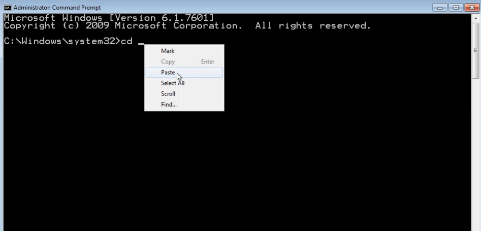 type “cd” then paste in your location