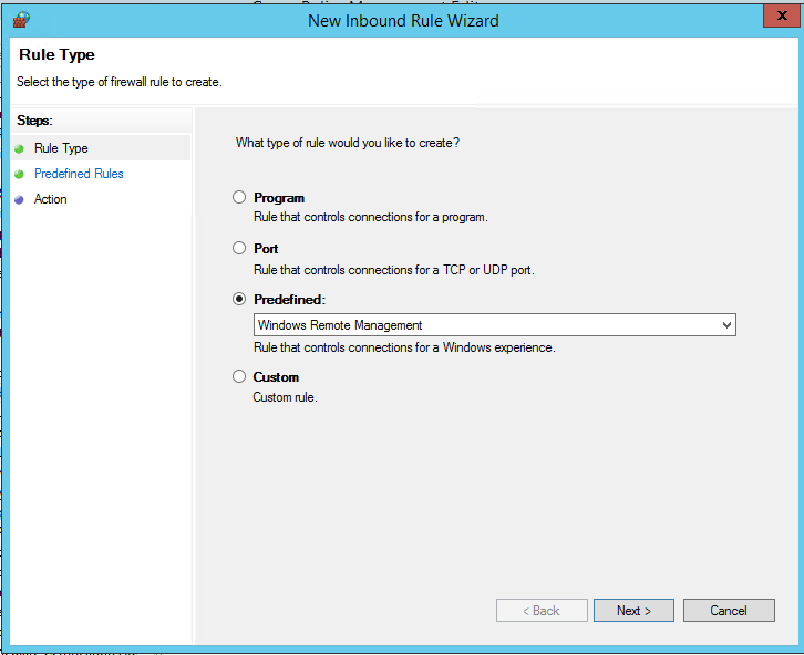 Go to; “Computer Configuration/Policies/Administrative Templates/Windows Components/Windows Remote Management/WinRM Service” and right-click the highlighted options.