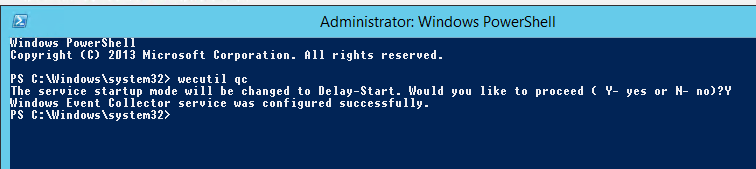 We head over to our EL server now and start to complete the set up on the collector. Run the below from an elevated powershell window.
