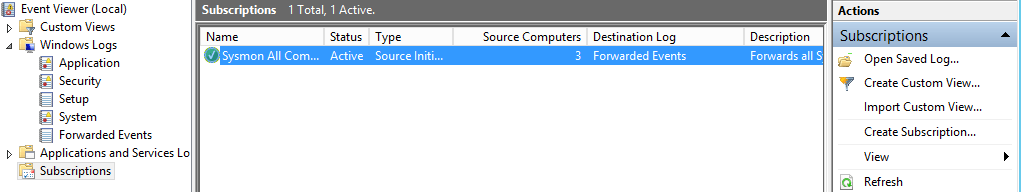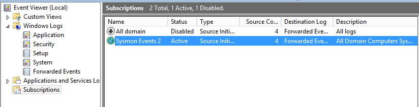 That’s the Sysmon Subscription sorted, now we need one for the other Windows logs.