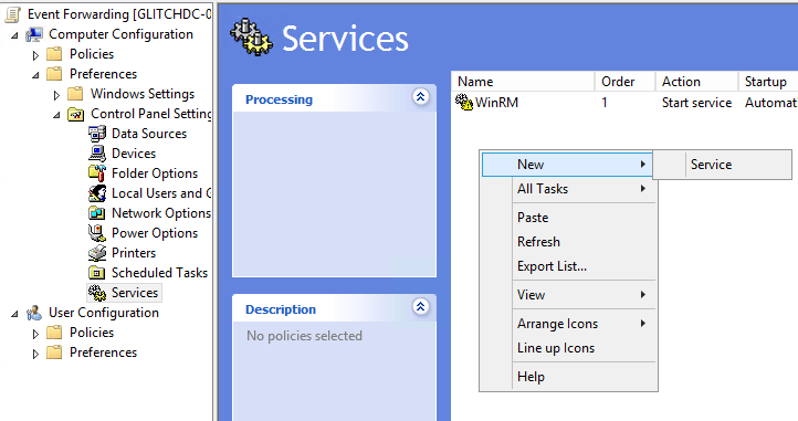 OK so we have now setup the Log forwarding location, and the permissions required, now we need to ensure the required services are running on the source computers on the Domain so they can forward the logs to our collecting server.