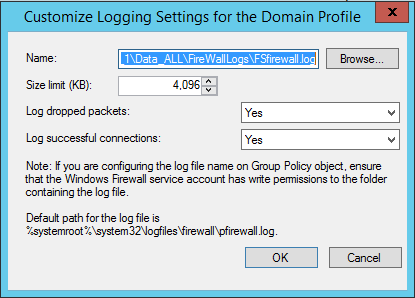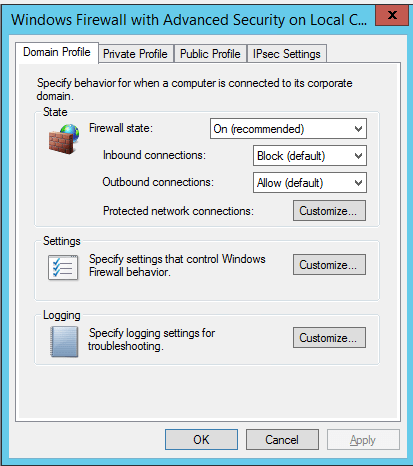 You can see from the top tab that “Domain Profile” is the active tab. If you are not sure which profile you are using you can enable for all profiles. We are using Domain so we select “Specify logging settings for troubleshooting”