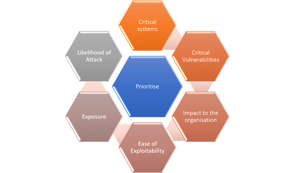 Once a patch or update has been identified as relevant, we need to prioritise them based on some of the conditions listed here. Critical systems and critical patches should be given priority.