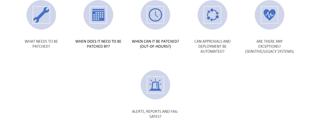 Just pushing out patches or updates and hoping for the best is not a viable plan, you need to be looking at your progress on a daily basis and actively looking to repair issues or problem devices as part of your business as usual (BAU). Patches across products are released almost constantly throughout any given month so focusing on “Patch Tuesday” and working towards having it completed before next month is a flawed strategy in my opinion. These types of targets also do not take into account any operational risk faced by your organisation, so understanding this is also critical. Blindly updating to meet arbitrary targets can cause availability issues in a similar way that a cyber attack could. This does not mean do not patch, it simply means you need to understand the organisation and its requirements as with any other IT decision.