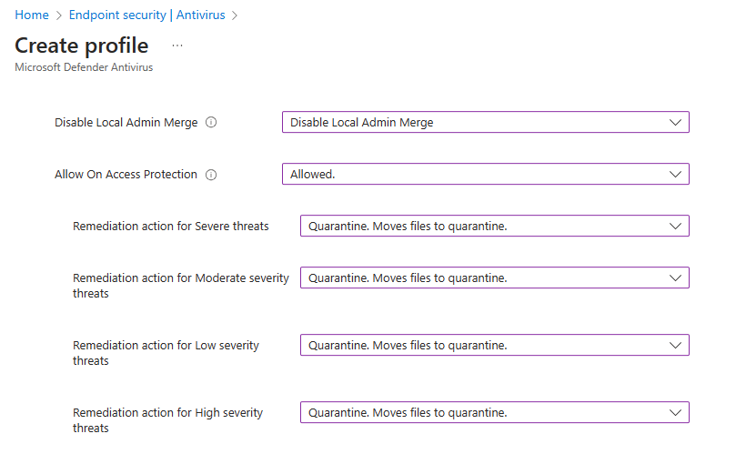 Another thing to remember is that antivirus, and endpoint security relate to very different settings within Intune, and that you will also need to configure Endpoint Detection and Response, and Endpoint Security settings even if you have configured antivirus settings.