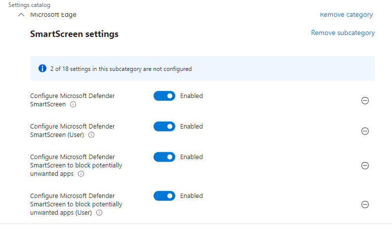 This is a quick guide for configuring Edge SmartScreen, which is set as a separate policy as generally we are going to need different configurations for different user groups, so it’s a good idea to have your Edge policy separate from other endpoint policies.