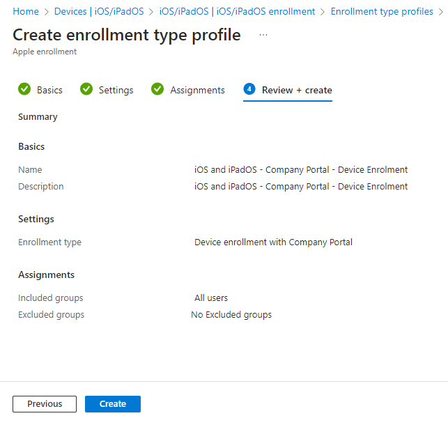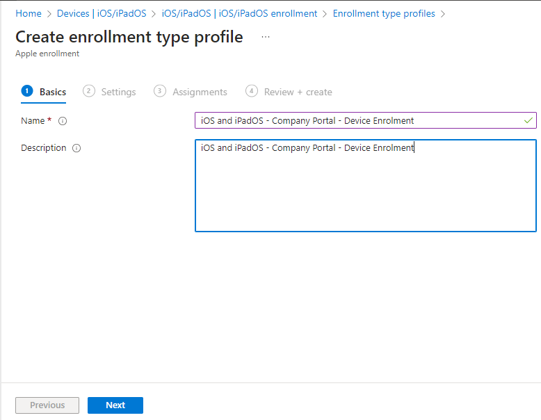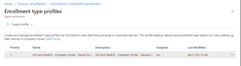 Once created we will see the policy in the enrolment types profiles page.