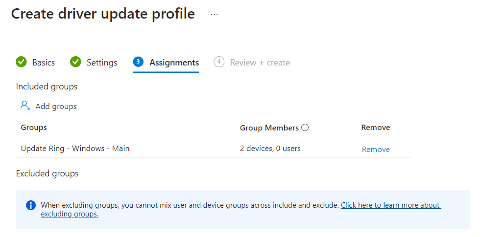 Let’s create a Group which will be used to assign the Update Configuration to the desired group of devices. It makes it easier to track if we name the Group and the Configuration with similar terms.