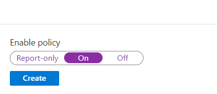 We have the ability to leave the policy in a “Report-only” state so we can monitor any impact from the policy before fully enabling it. We are going to go ahead and enable this policy, however we obviously recommend sufficient testing is carried out before enabling ANY conditional access policy.